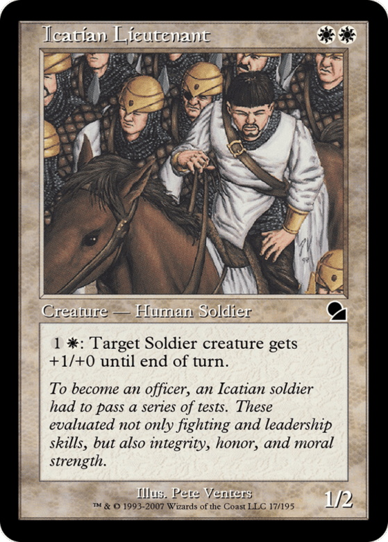 {1}{W}: Target Soldier creature gets +1/+0 until end of turn.
