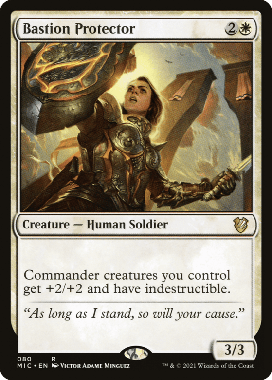Commander creatures you control get +2/+2 and have indestructible.