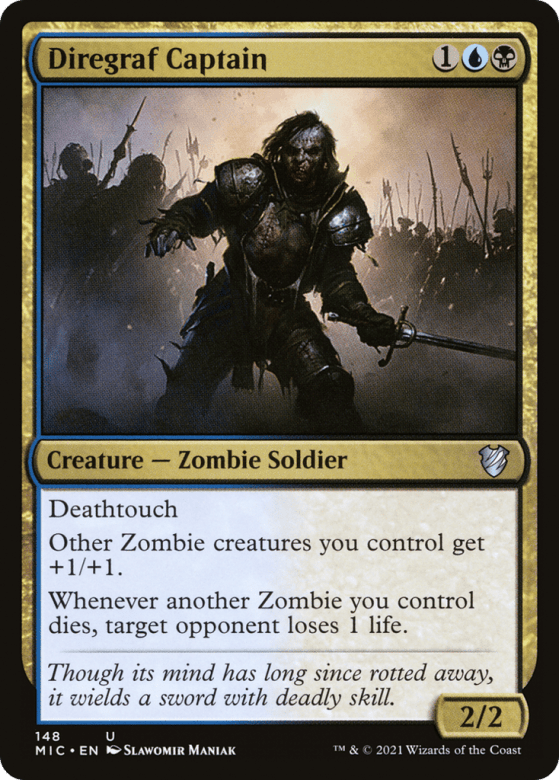 Deathtouch Other Zombie creatures you control get +1/+1. Whenever another Zombie you control dies, target opponent loses 1 life.