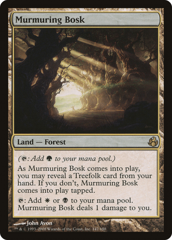 ({T}: Add {G}.) As this land enters, you may reveal a Treefolk card from your hand. If you don't, this land enters tapped. {T}: Add {W} or {B}. This land deals 1 damage to you.