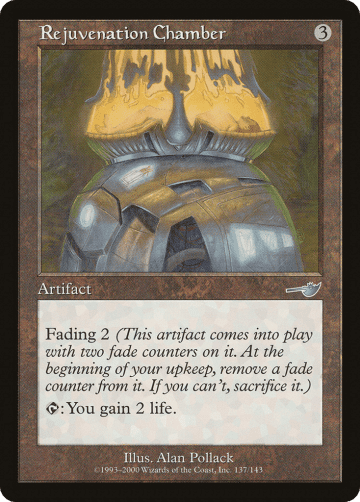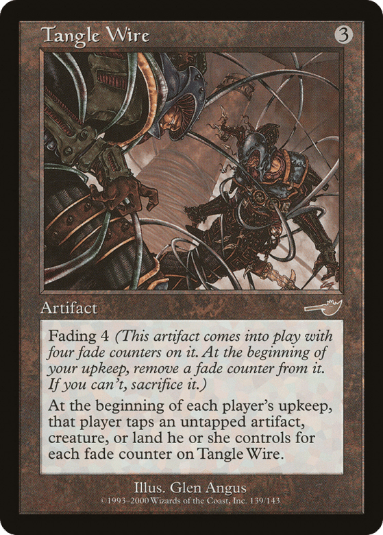 Fading 4 (This artifact enters with four fade counters on it. At the beginning of your upkeep, remove a fade counter from it. If you can't, sacrifice it.) At the beginning of each player's upkeep, that player taps an untapped artifact, creature, or land they control for each fade counter on this artifact.