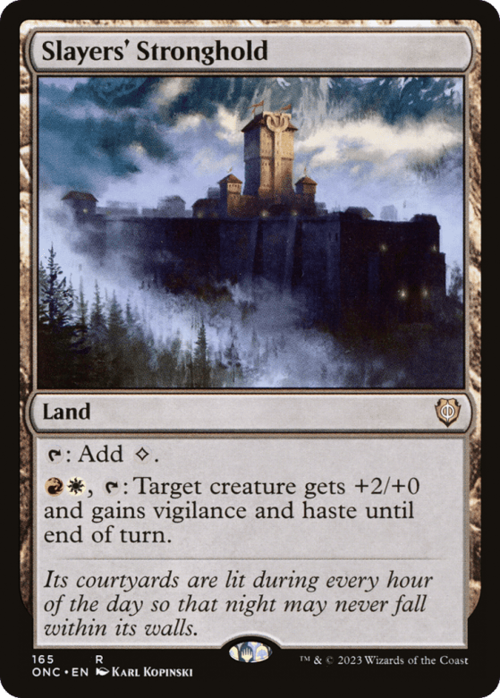 {T}: Add {C}. {R}{W}, {T}: Target creature gets +2/+0 and gains vigilance and haste until end of turn.