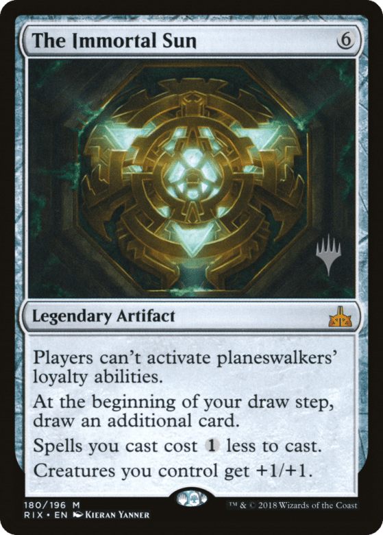 Players can't activate planeswalkers' loyalty abilities. At the beginning of your draw step, draw an additional card. Spells you cast cost {1} less to cast. Creatures you control get +1/+1.