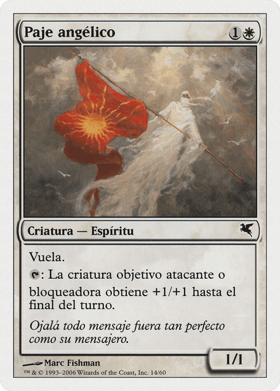 Flying {T}: Target attacking or blocking creature gets +1/+1 until end of turn.