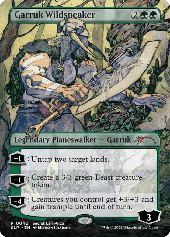 [+1]: Untap two target lands. [−1]: Create a 3/3 green Beast creature token. [−4]: Creatures you control get +3/+3 and gain trample until end of turn.