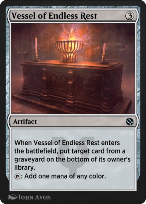 When this artifact enters, put target card from a graveyard on the bottom of its owner's library. {T}: Add one mana of any color.