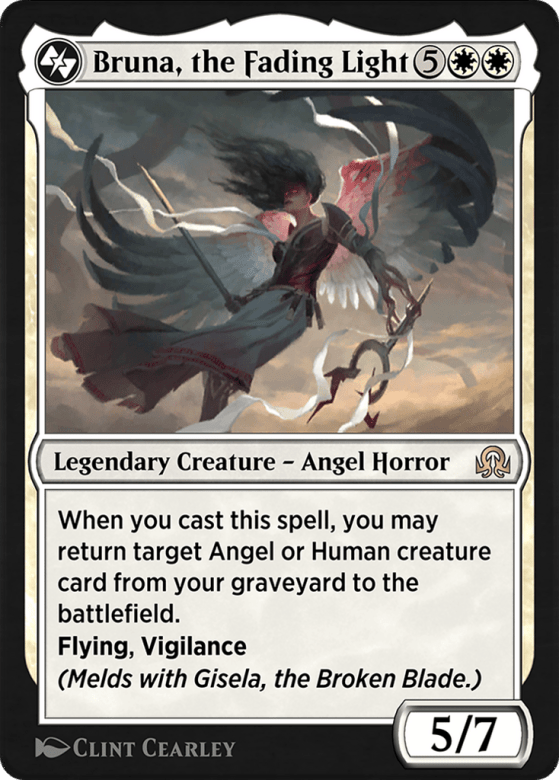 When you cast this spell, you may return target Angel or Human creature card from your graveyard to the battlefield. Flying, vigilance (Melds with Gisela, the Broken Blade.)