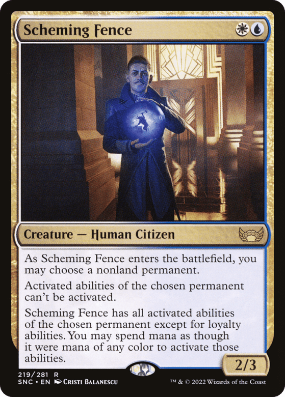 As this creature enters, you may choose a nonland permanent. Activated abilities of the chosen permanent can't be activated. This creature has all activated abilities of the chosen permanent except for loyalty abilities. You may spend mana as though it were mana of any color to activate those abilities.