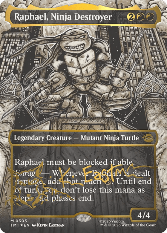 Raphael must be blocked if able. Enrage — Whenever Raphael is dealt damage, add that much {R}. Until end of turn, you don't lose this mana as steps and phases end.