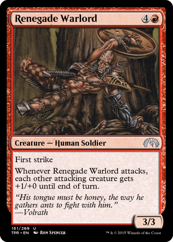 First strike Whenever this creature attacks, each other attacking creature gets +1/+0 until end of turn.