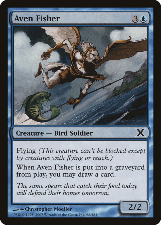 Flying (This creature can't be blocked except by creatures with flying or reach.) When this creature dies, you may draw a card.