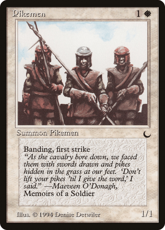 First strike; banding (Any creatures with banding, and up to one without, can attack in a band. Bands are blocked as a group. If any creatures with banding you control are blocking or being blocked by a creature, you divide that creature's combat damage, not its controller, among any of the creatures it's being blocked by or is blocking.)
