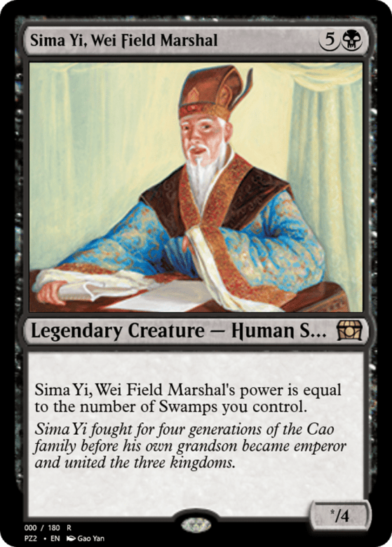 Sima Yi's power is equal to the number of Swamps you control.