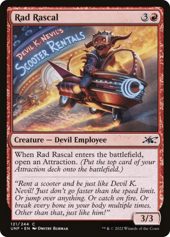 When this creature enters, open an Attraction. (Put the top card of your Attraction deck onto the battlefield.)