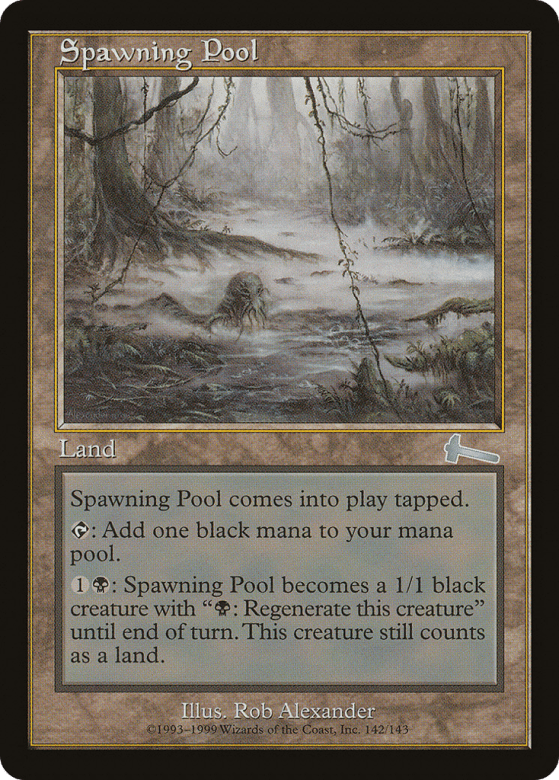 This land enters tapped. {T}: Add {B}. {1}{B}: This land becomes a 1/1 black Skeleton creature with "{B}: Regenerate this creature" until end of turn. It's still a land. (If it regenerates, the next time it would be destroyed this turn, instead tap it, remove it from combat, and heal all damage on it.)