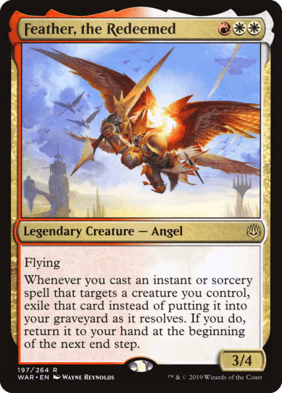 Flying Whenever you cast an instant or sorcery spell that targets a creature you control, exile that card instead of putting it into your graveyard as it resolves. If you do, return it to your hand at the beginning of the next end step.