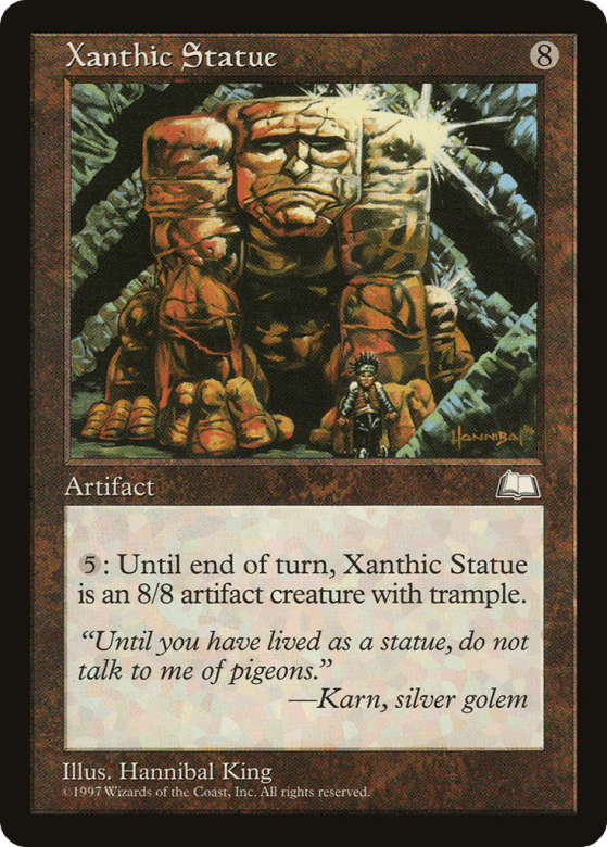 {5}: Until end of turn, this artifact becomes an 8/8 Golem artifact creature with trample.
