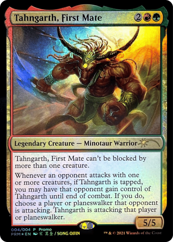 Tahngarth can't be blocked by more than one creature. Whenever an opponent attacks with one or more creatures, if Tahngarth is tapped, you may have that opponent gain control of Tahngarth until end of combat. If you do, choose a player or planeswalker that opponent is attacking. Tahngarth is attacking that player or planeswalker.