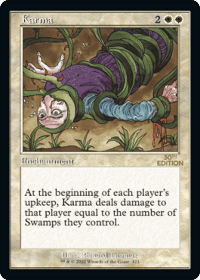 At the beginning of each player's upkeep, this enchantment deals damage to that player equal to the number of Swamps they control.