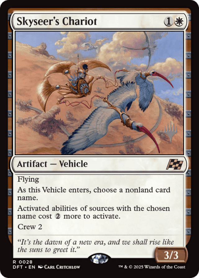 Flying As this Vehicle enters, choose a nonland card name. Activated abilities of sources with the chosen name cost {2} more to activate. Crew 2