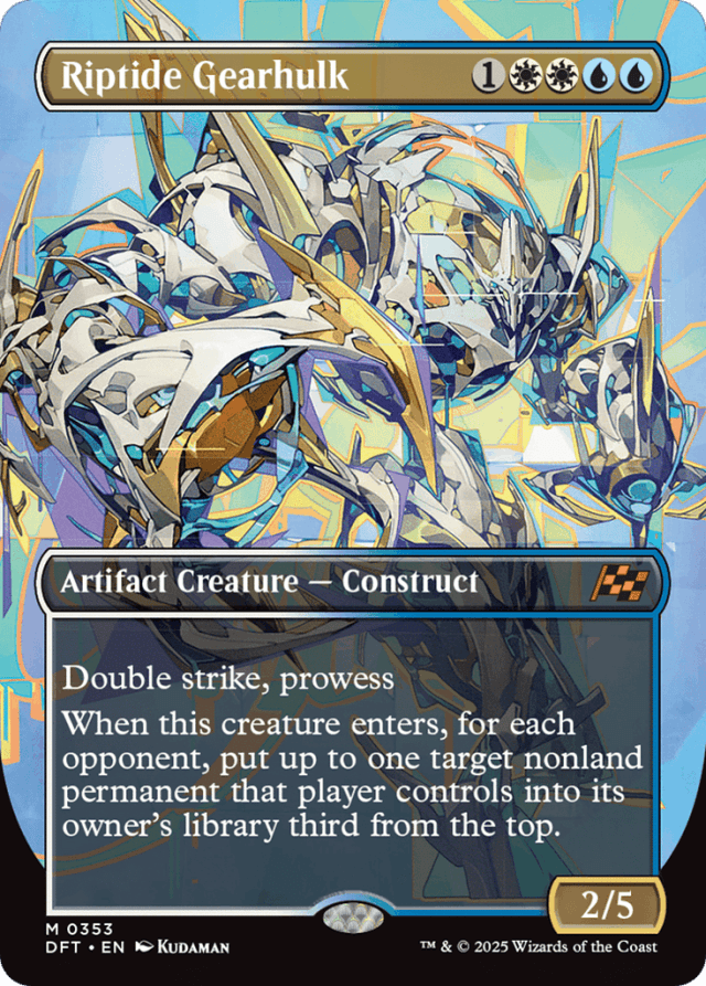 Double strike Prowess (Whenever you cast a noncreature spell, this creature gets +1/+1 until end of turn.) When this creature enters, for each opponent, put up to one target nonland permanent that player controls into its owner's library third from the top.