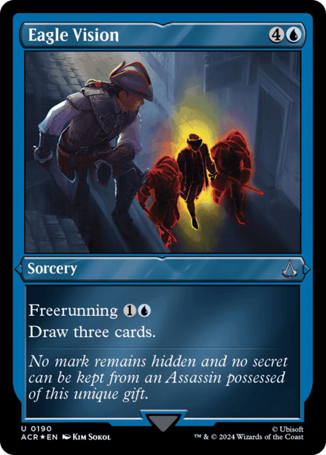 Freerunning {1}{U} (You may cast this spell for its freerunning cost if you dealt combat damage to a player this turn with an Assassin or commander.) Draw three cards.