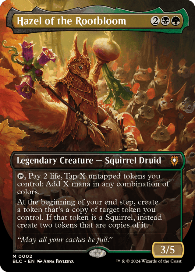 {T}, Pay 2 life, Tap X untapped tokens you control: Add X mana in any combination of colors. At the beginning of your end step, create a token that's a copy of target token you control. If that token is a Squirrel, instead create two tokens that are copies of it.