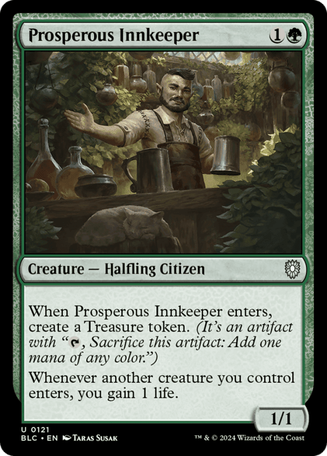 When this creature enters, create a Treasure token. (It's an artifact with "{T}, Sacrifice this token: Add one mana of any color.") Whenever another creature you control enters, you gain 1 life.