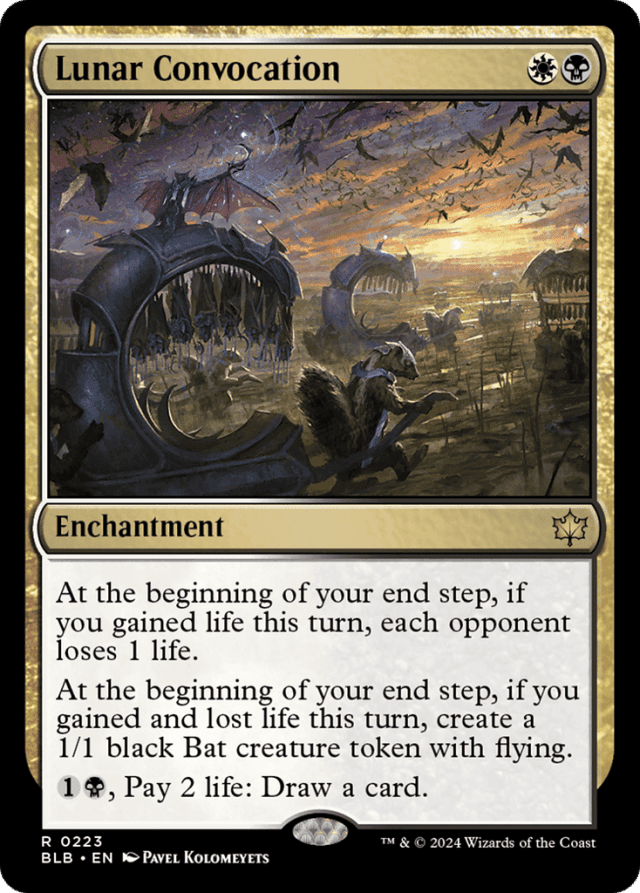 If you haven’t gained life during the turn when your end step begins, Lunar Convocation’s first ability won’t trigger at all. Gaining life during your end step won’t cause the ability to trigger. — Lunar Convocation’s first ability cares whether you gained life this turn, not how your life total changed. For example, if you gained 2 life and lost 1 life in the same turn, you still lost life. You also still gained life, which is relevant for Lunar Convocation’s second ability. — Similarly, if you haven’t both gained and lost life during the turn when your end step begins, Lunar Convocation’s second ability won’t trigger at all. Gaining and/or losing life during your end step won’t cause the ability to trigger.