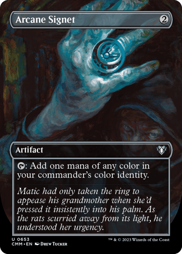 If you don't have a commander, Arcane Signet's ability produces no mana. — If you have two commanders, the ability adds one mana of any color in their combined color identities. — If your commander is a card that has no colors in its color identity, Arcane Signet's ability produces no mana. It doesn't produce {C}.