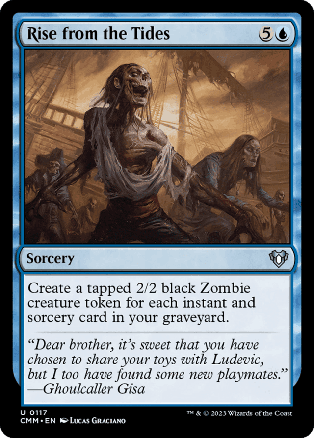 Create a tapped 2/2 black Zombie creature token for each instant and sorcery card in your graveyard.