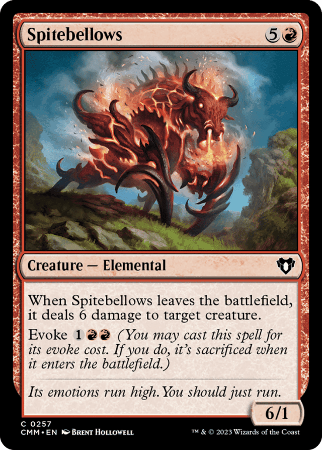 When this creature leaves the battlefield, it deals 6 damage to target creature. Evoke {1}{R}{R} (You may cast this spell for its evoke cost. If you do, it's sacrificed when it enters.)