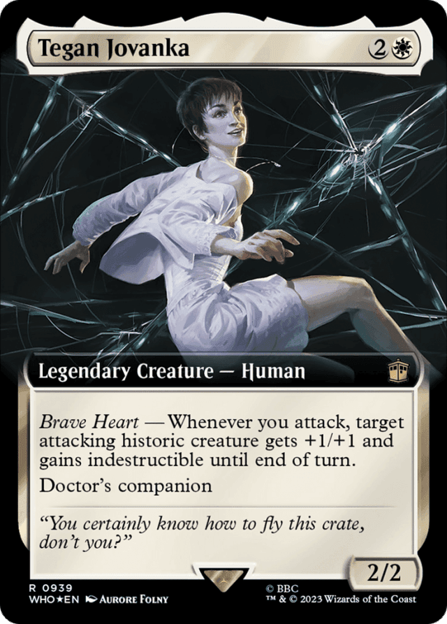 Brave Heart — Whenever you attack, target attacking historic creature gets +1/+1 and gains indestructible until end of turn. (Artifacts, legendaries, and Sagas are historic.) Doctor's companion (You can have two commanders if the other is the Doctor.)