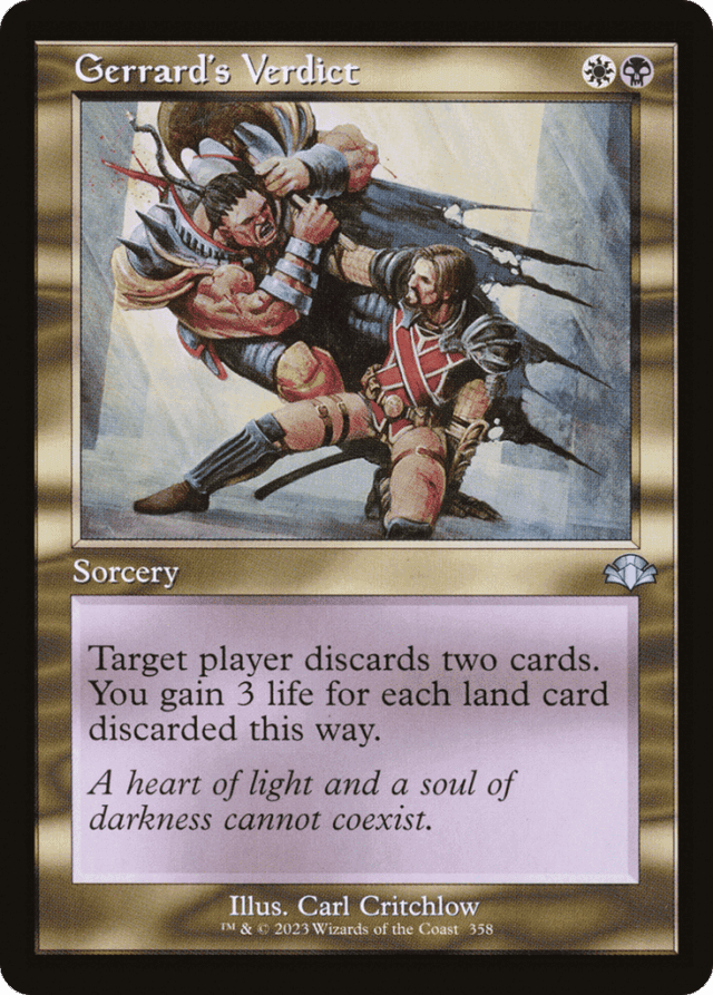 Target player discards two cards. You gain 3 life for each land card discarded this way.