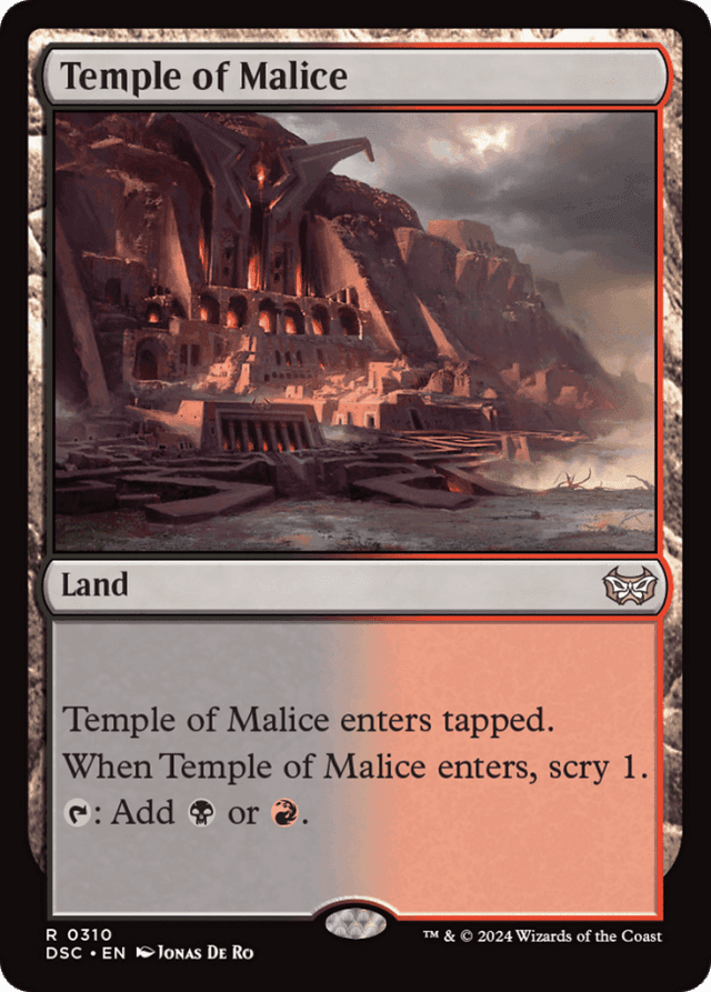 This land enters tapped. When this land enters, scry 1. (Look at the top card of your library. You may put that card on the bottom.) {T}: Add {B} or {R}.