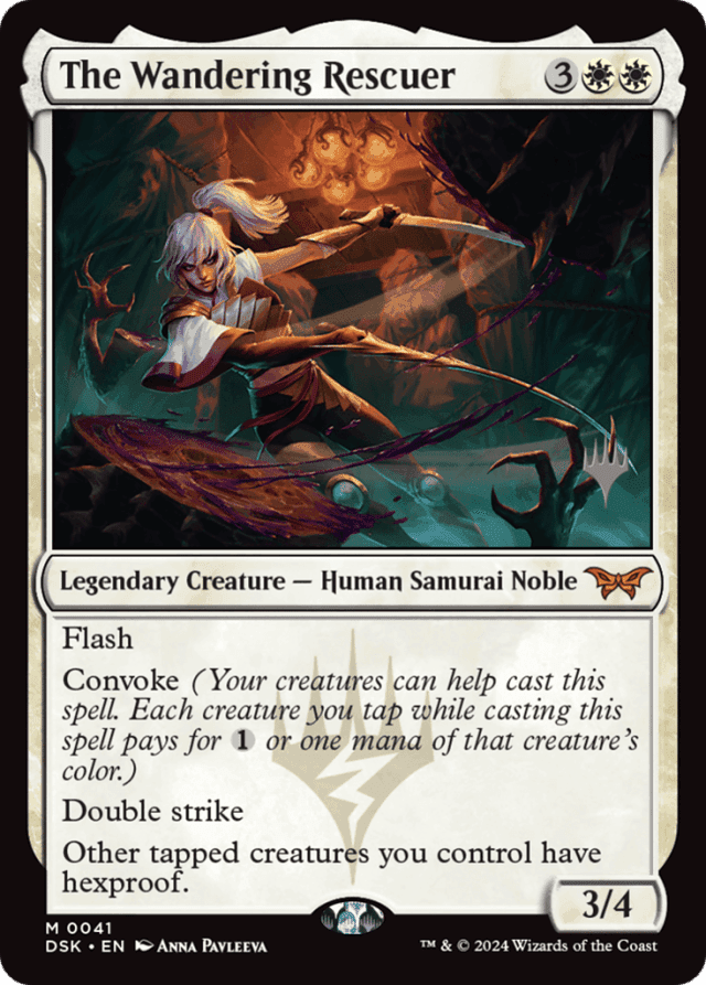 Flash Convoke (Your creatures can help cast this spell. Each creature you tap while casting this spell pays for {1} or one mana of that creature's color.) Double strike Other tapped creatures you control have hexproof.