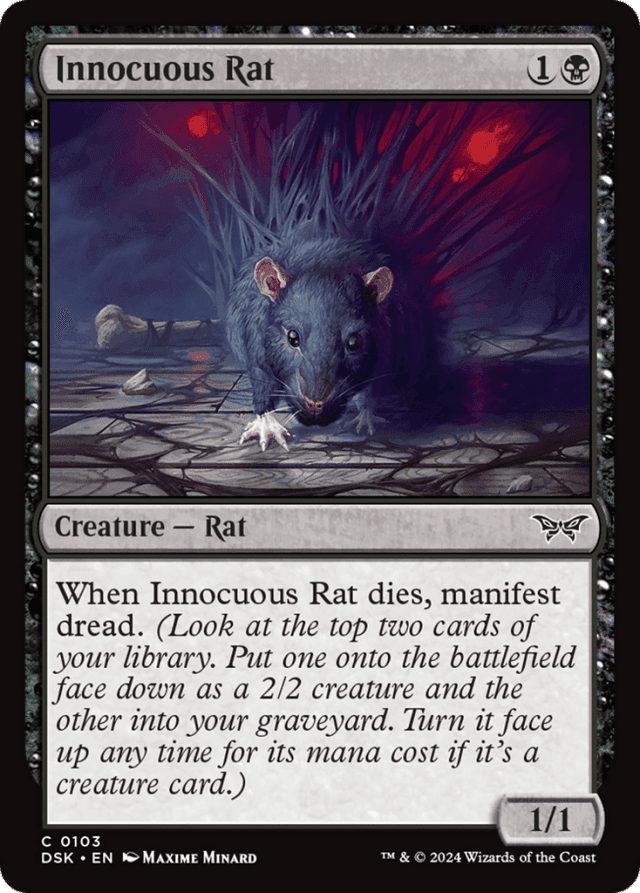 When this creature dies, manifest dread. (Look at the top two cards of your library. Put one onto the battlefield face down as a 2/2 creature and the other into your graveyard. Turn it face up any time for its mana cost if it's a creature card.)