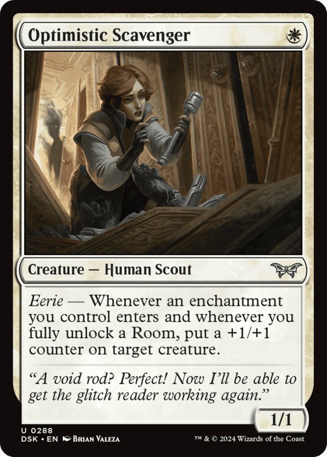 Eerie — Whenever an enchantment you control enters and whenever you fully unlock a Room, put a +1/+1 counter on target creature.