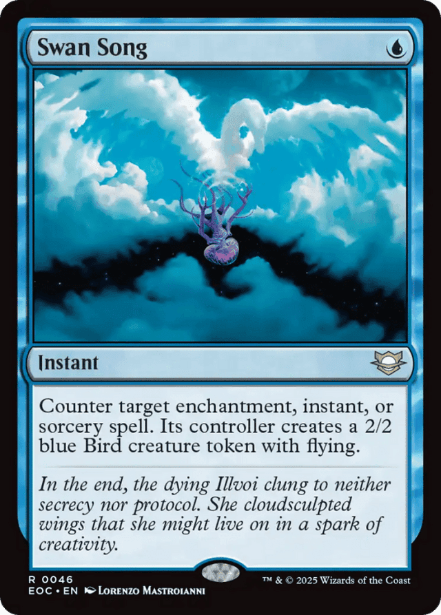 Counter target enchantment, instant, or sorcery spell. Its controller creates a 2/2 blue Bird creature token with flying.
