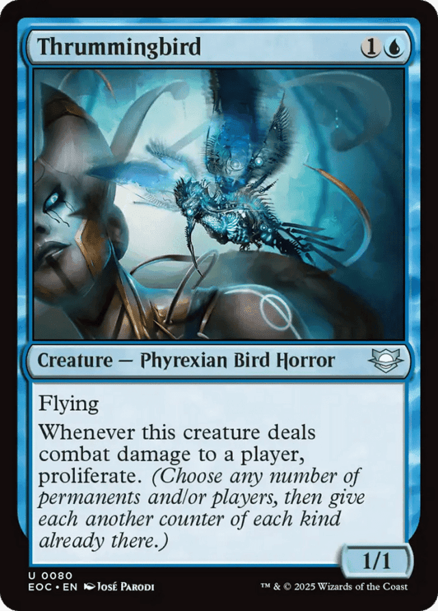 Flying Whenever this creature deals combat damage to a player, proliferate. (Choose any number of permanents and/or players, then give each another counter of each kind already there.)