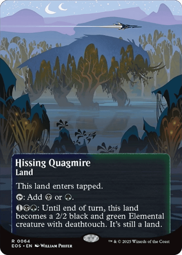 This land enters tapped. {T}: Add {B} or {G}. {1}{B}{G}: This land becomes a 2/2 black and green Elemental creature with deathtouch until end of turn. It's still a land.