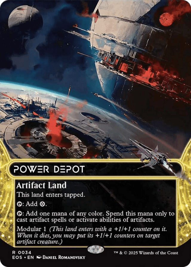 If Power Depot is a creature and gets enough -1/-1 counters put on it to cause it to go to the graveyard, modular will put a number of +1/+1 counters on the target artifact creature equal to the number of +1/+1 counters on this creature before it left the battlefield. — Power Depot is a land, so it can only be played as a land. It cannot be cast as a spell. — The mana produced by the last activated ability can't be spent to activate abilities of artifact cards in other zones, such as cycling or unearth costs. — Yes, this land enters the battlefield with a +1/+1 counter, which does nothing while it's a land. When it's put into the graveyard from the battlefield, you may put its +1/+1 counters onto target artifact creature, no matter what Power Depot's card types are at the time.