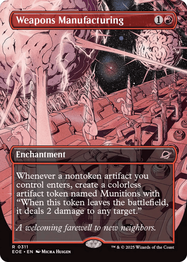 Whenever a nontoken artifact you control enters, create a colorless artifact token named Munitions with "When this token leaves the battlefield, it deals 2 damage to any target."