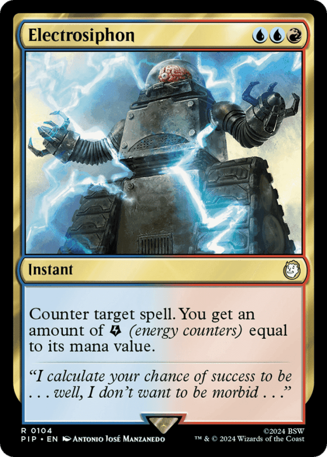 Counter target spell. You get an amount of {E} (energy counters) equal to its mana value.