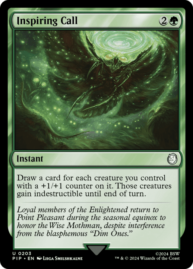 Creatures you control that have +1/+1 counters put on them after Inspiring Call resolves won't gain indestructible. — Once a creature gains indestructible, it will have it for the turn, even if it loses all its +1/+1 counters.
