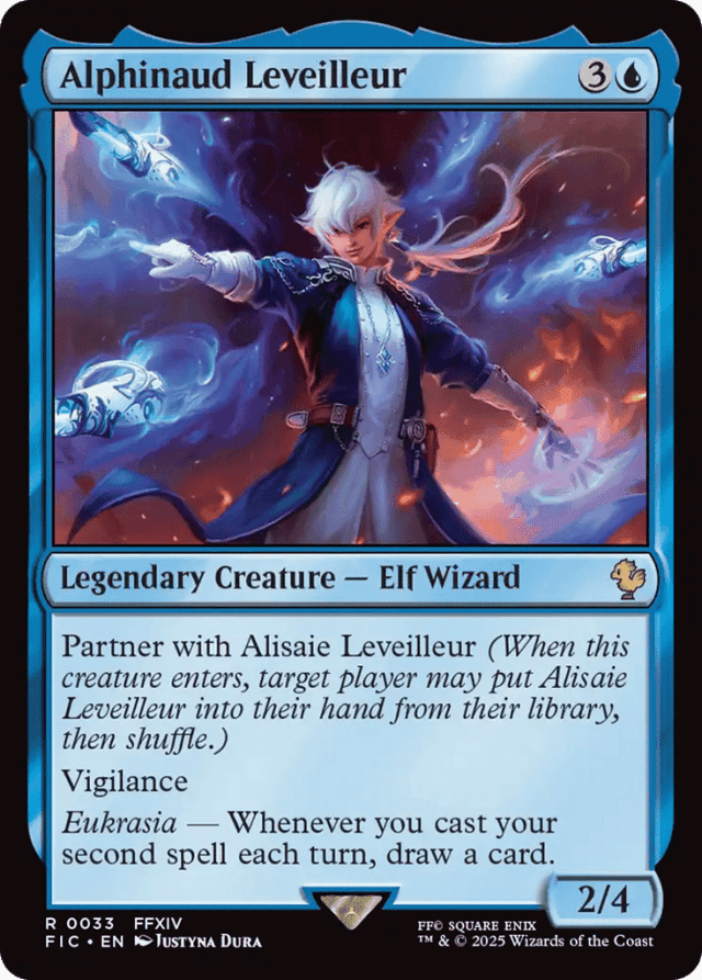 Partner with Alisaie Leveilleur (When this creature enters, target player may put Alisaie Leveilleur into their hand from their library, then shuffle.) Vigilance Eukrasia — Whenever you cast your second spell each turn, draw a card.