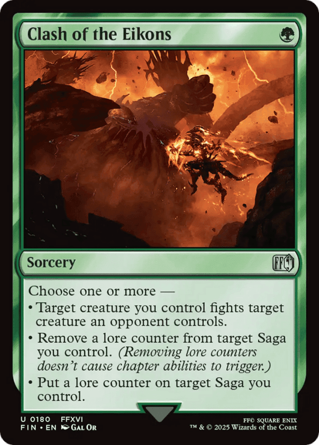 Choose one or more — • Target creature you control fights target creature an opponent controls. • Remove a lore counter from target Saga you control. (Removing lore counters doesn't cause chapter abilities to trigger.) • Put a lore counter on target Saga you control.
