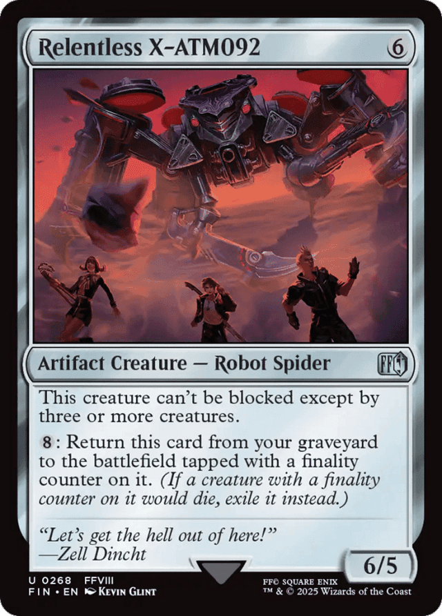 This creature can't be blocked except by three or more creatures. {8}: Return this card from your graveyard to the battlefield tapped with a finality counter on it. (If a creature with a finality counter on it would die, exile it instead.)