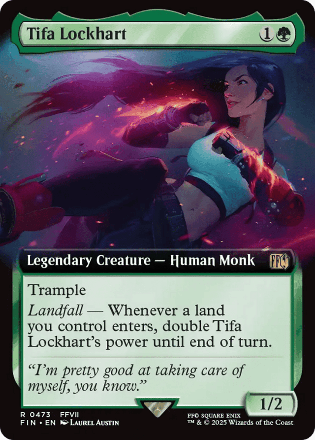 Trample Landfall — Whenever a land you control enters, double Tifa Lockhart's power until end of turn.