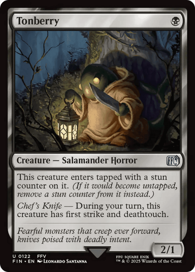 This creature enters tapped with a stun counter on it. (If it would become untapped, remove a stun counter from it instead.) Chef's Knife — During your turn, this creature has first strike and deathtouch.